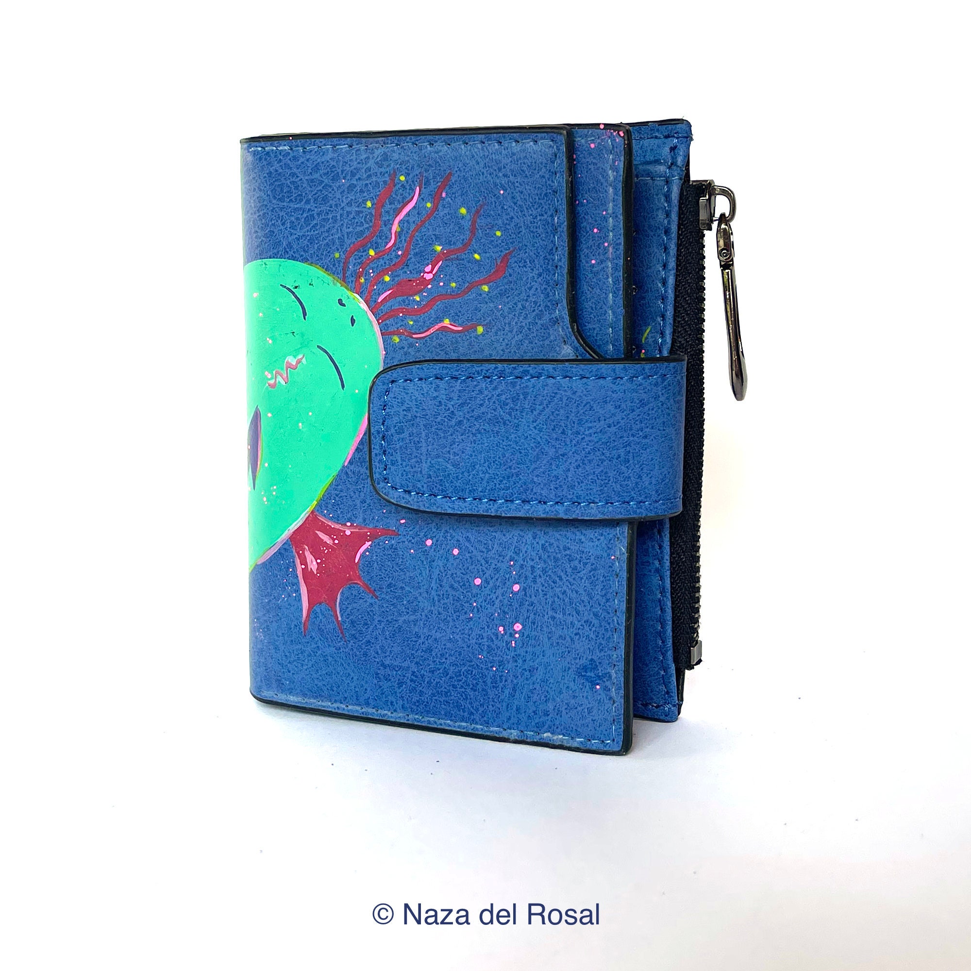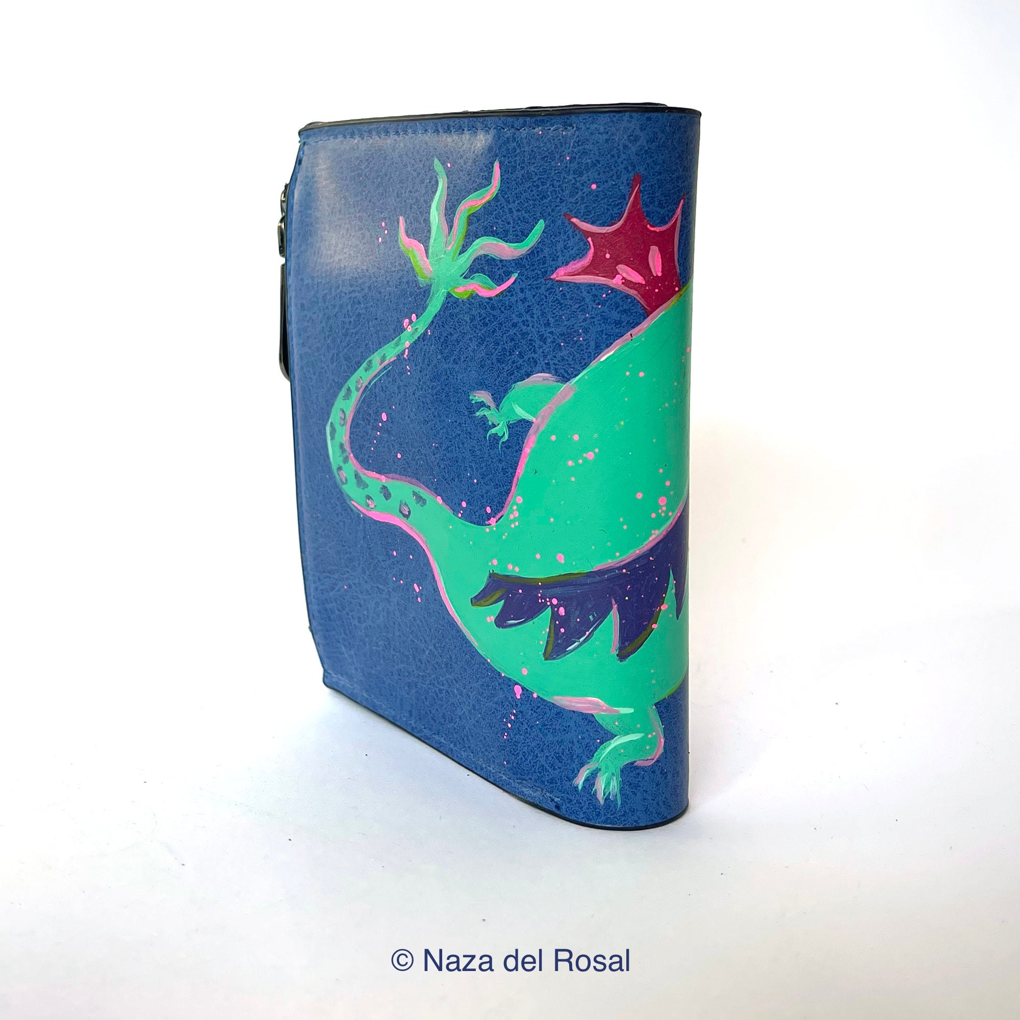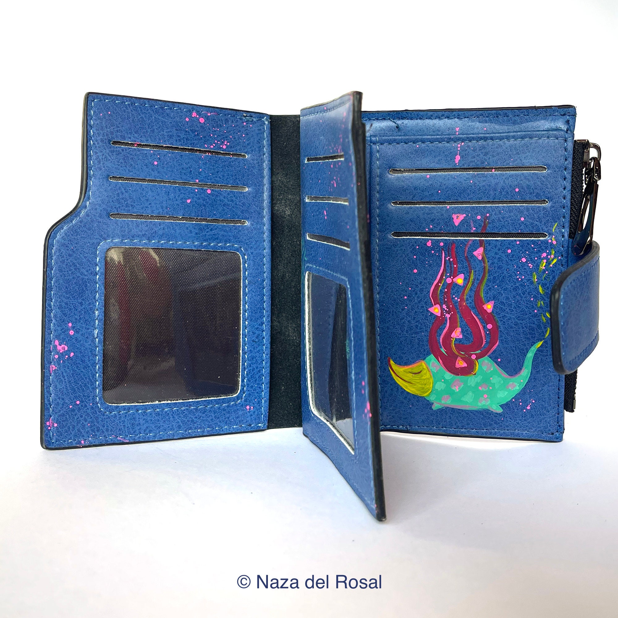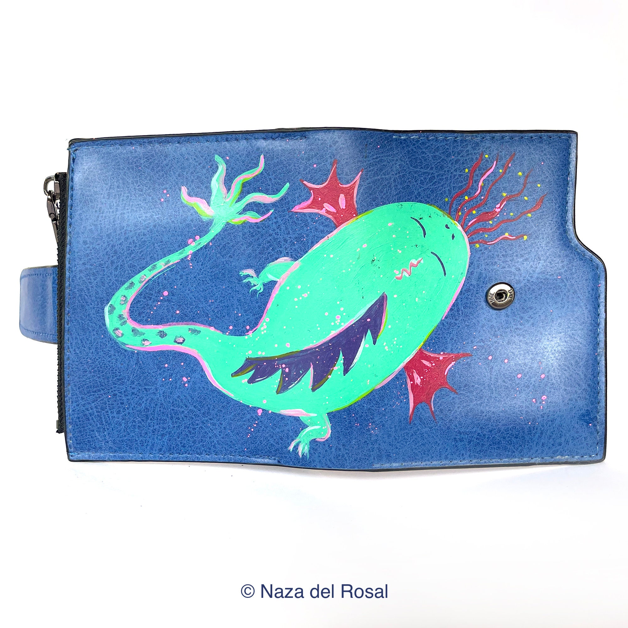 Cartera de polipiel pintada a mano | Pintura surrealista de animales | Cartera pintada a todo color